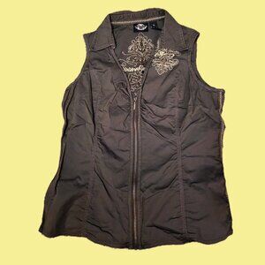 HARLEY DAVIDSON Women's Vest Top XL brown Embroidered Logo sleeveless zippered