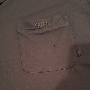 Soft and stylish black pajama set. Includes short sleeve button-up top and shorts. Ideal for cozy nights. Wore once or twice, one flaw is photographed. Small hole in pocket, does not affect the way this item is worn.