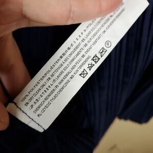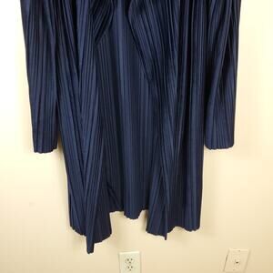 Gently used. Size large. Color is navy. Long sleeve, velvet open front cardigan. Long length, all over pleats.
