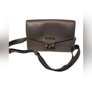 Furla Black Leather Crossbody Bag Beautiful Clean Adjustable Strap Purse Italy