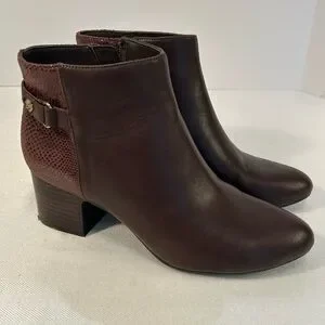 Anne Klein Hilda Ankle Boots in Dark Brown with "Snakeskin" Heels 7 1/2 M