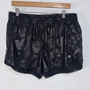 Athleta Women's Printed Running Shorts • Black Tropical Leaf • Size L