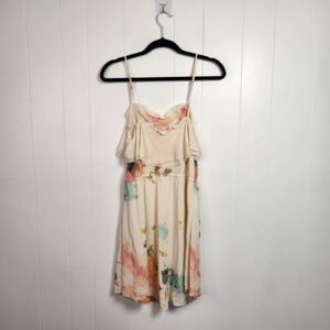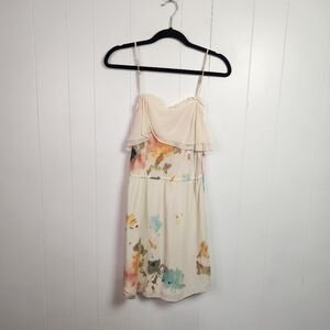 Aritzia Wilfred 100% Silk Emmanuelle Watercolor Mini Dress Cream Size Medium