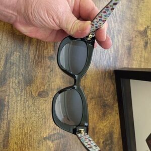 Kate Spade Straw Shoulder Bag with Green and Pink Accents and sunglasses & case