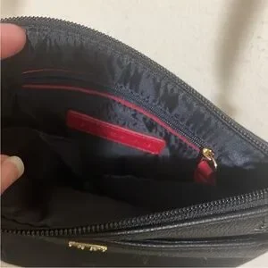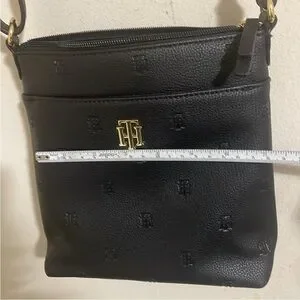 Elegant black crossbody bag with a sleek design. Perfect for any occasion.