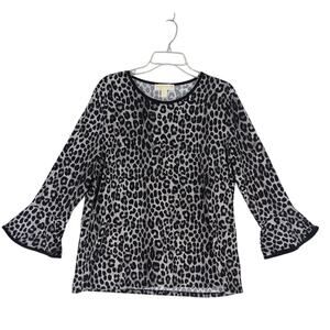 Michael Michael Kors Animal Print Top Size XL Black and Gray Flared Long Sleeves