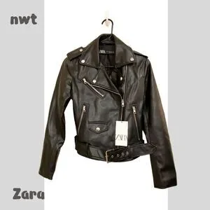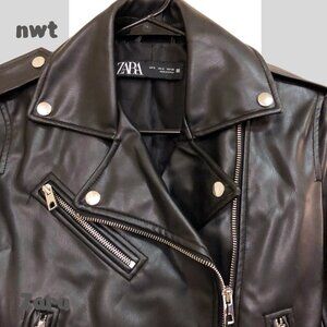 NWT NEW Zara Womens Faux Leather Biker Jacket Black, Size S