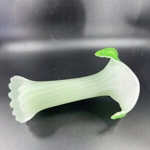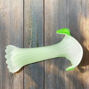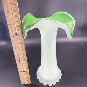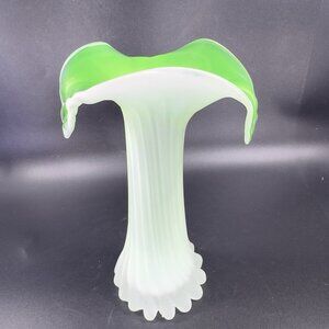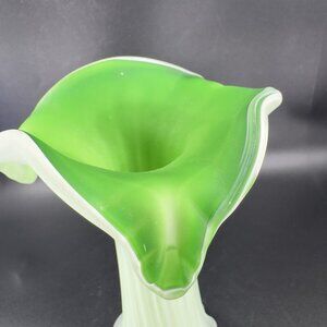 Vintage 1970s Frosted Green Leaf Shaped Top Glass Vase Vessel Jack In The Pulpit