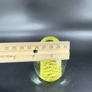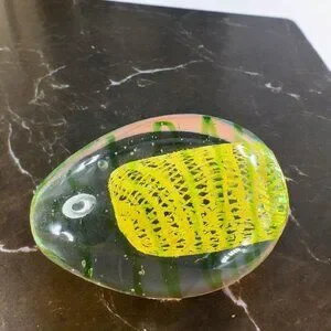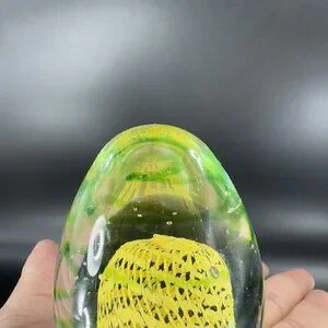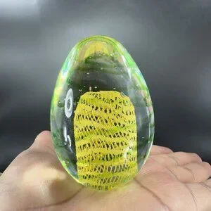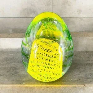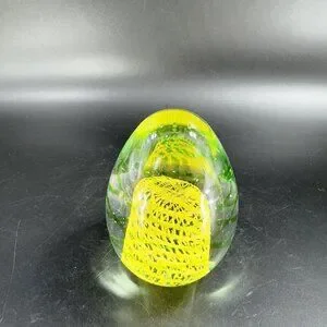 Art Glass Paperweight With Yellow Green Swirls All Over Egg Shaped Paperweight
