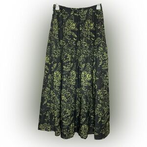 This elegant women's skirt features a striking black and green floral pattern, perfect for any occasion. The intricate design adds a touch of sophistication to your wardrobe.