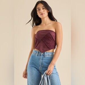 “Jasmine Suede Lace Tube Top” Actually Has A Good Stretch To The Material. New With Tags Smoke Free Home Originally $52 Keep In Mind Items Cannot Be Returned. Please Message With Any Questions If You Are Unsure Of Sizing Or If You Need More Information. Product Information Per Altar’d State’s Website: Fit: Fitted, Cropped Closure: Slip On, Tie Back Material: Self: 95% Polyester, 5% Spandex, Lining: 95% Nylon, 5% Spandex Strapless