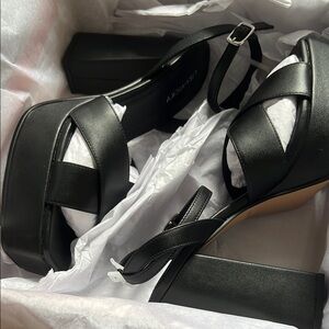 Lisa Vicky JAZZ-V Black Leather Platform Strappy Sandals | Size 8.5 NIB
