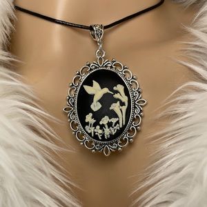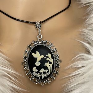 Vintage Inspired Hummingbird Resin Cameo Pendant Necklace Artisan Design…
