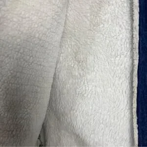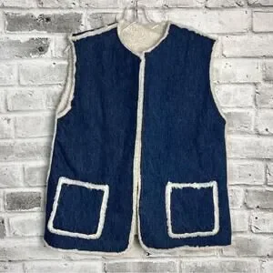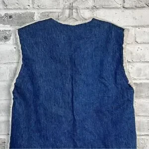 Vintage handmade faux sherpa lined trim dark denim open front vest. Please reference pictures for wear otherwise in good used vintage condition.