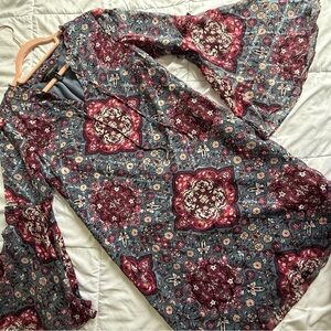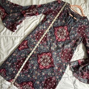 White House Black Market Boho Print Bell Sleeve Dress Size XS