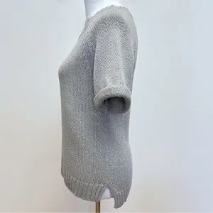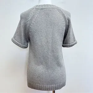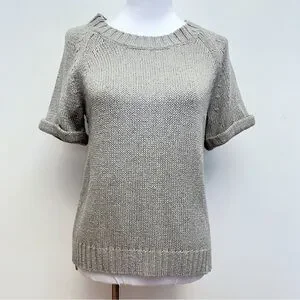 Banana Republic Grey Knit Gold Metallic Threaded Short Sleeve Wool Blend Sweater