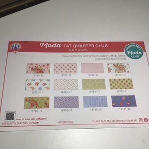 The fabric collection is Memory Lane by Brenda Riddle for the Moda fabric house. You can purchase more of any of this fabric collection since this is a 2025 bundle.