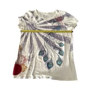 Vtg Y2K Lucky Brand tshirt Women's Sz L Peacock Floral nature fairy