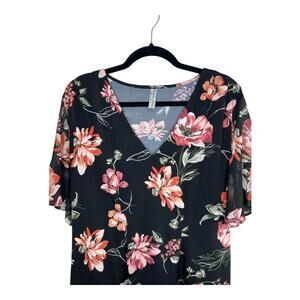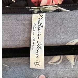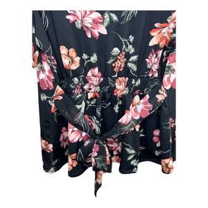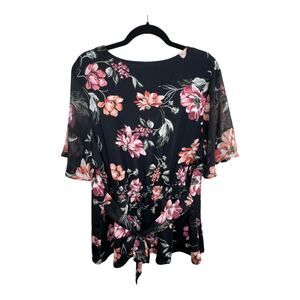 PerSeption Womens Black Floral Tie Back Blouse Size 2X
