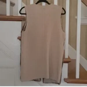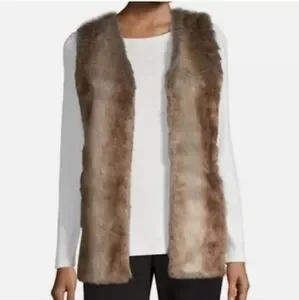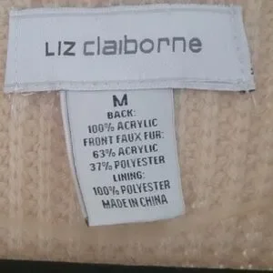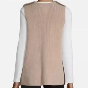 LIZ CLAIBORNE Knit Faux Fur Tan Sweater Vest Size Medium