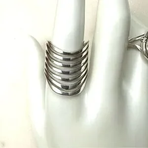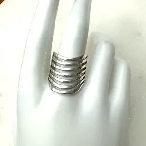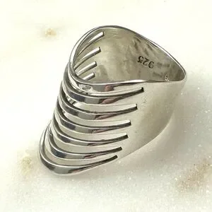 Boho Magic Curved Multi Layer Sterling Silver Full Finger Statement Ring