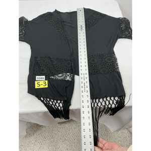 Womans Charlotte Russe Open Front Shrug Medium Black Crotchet Fringe
