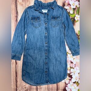 Stylish denim dress. Button-down front. Long sleeves. Perfect for casual outings.