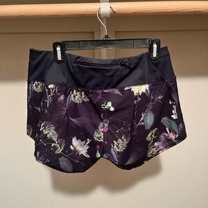 Oiselle Black Moody Floral Roga Shorts