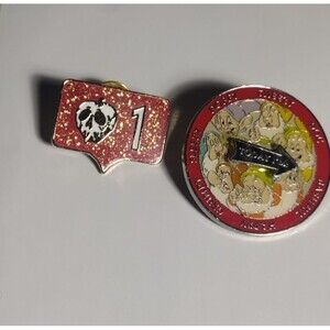 2 Disney Snow White and the Seven Dwafs Pins Poison Apple Spinner Pin Enamel