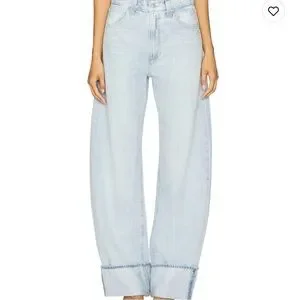 Stylish and comfortable light blue jeans perfect for any casual outing. These jeans offer a relaxed barrel fit.