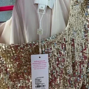 @missmolly916 nothing at all. I bought it a few months ago not realizing I’m still loosing weight. It’s a size 10 and I am now size 4-6. So it’s definitely too big for me and I want someone to enjoy it. I am currently looking for the same exact dress because I really do love this dress.