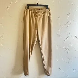 21 Saints Women's Faux leather Cream High Rise Ankle Jogger Pants Size S