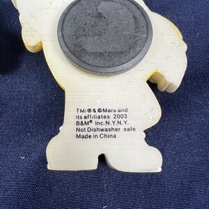 Add a nostalgic touch to your fridge or magnetic surface with this pair of vintage 2003 M&M's character magnets. Featuring the iconic Green (female) and Yellow M&M's, they are a charming find for collectors and fans alike. Perfect for displaying your love for classic candy and advertising memorabilia.