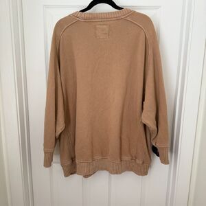 Women Aerie Down To Earth Cotton Crew Sweatshirt Oversized Camel Tan Extra Large