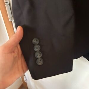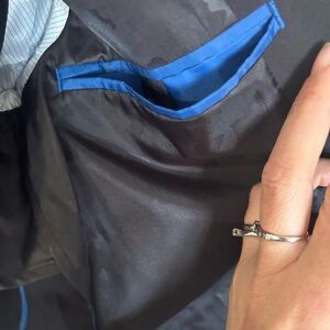 Nice preowned men’s black jacket. See additional pictures for measurements no rips or stains. Small spot on the sleeve where the price tag was removed.