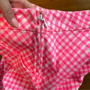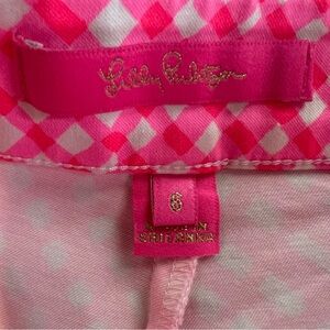 Vibrant pink gingham shorts. Classic Lilly Pulitzer style. Perfect for casual outings.