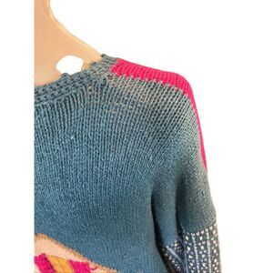 Vintage 80’s Cape Isle Knitters Patchwork Hand Knit Cottagecore Sweater L-RARE
