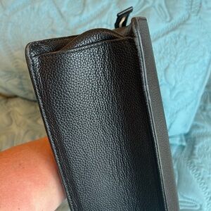 Chic Kate Spade bag with 3 separate compartments with zipper and sleeve pockets.. Feature a signature lining. Comes with crossbody adjustable strap. Some minor normal wear on corners and handle but is really not noticeable. See pictures for good details. Gold hardware. Clean and fresh and ready to go! Measures 11.5x8x4.5. Fits a lot!