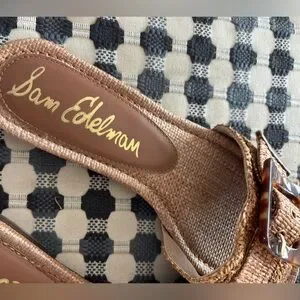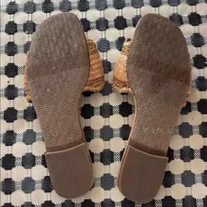 Perfect fall sandal with Elegant woven design with tortoiseshell buckle.