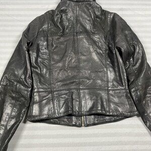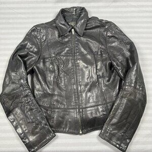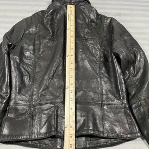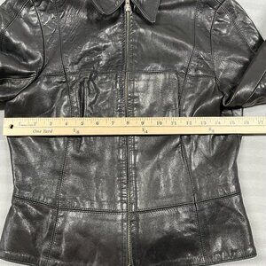 Vinetti Jacket Womens Small Black Lambskin Leather Zip Front Collared Fitted