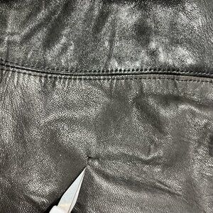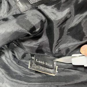Condition: Good pre-owned—light overall wear and creasing typical of lambskin. Small nick on back panel shown with pointer in photos; minor sleeve scuffing. Zipper functions properly and seams intact.