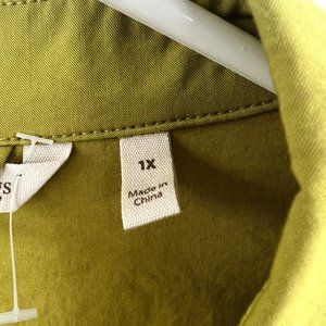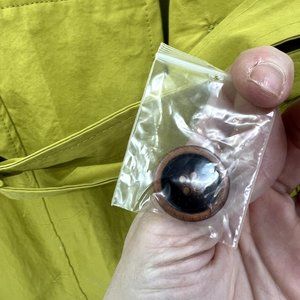 Chic yellow/chartreuse trench coat. Features double-breasted front. Includes adjustable belt and cuffs.