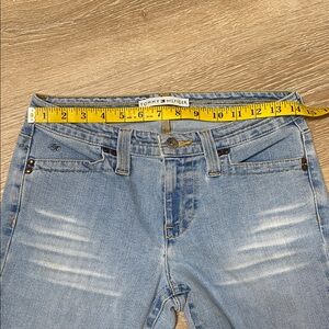 Mid-rise flare jeans from Tommy. Practically new. Cute detail on the hem.