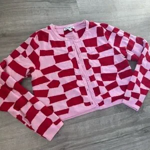 Vibrant pink and red sweater perfect for adding a pop of color to your wardrobe. Ideal for casual outings.