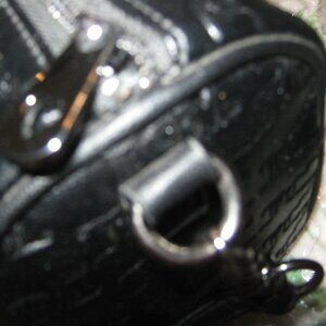 The Juicy Couture Fame satchel is a chic and versatile handbag crafted from durable faux leather with embossed monogram detailing that adds a touch of sophistication. Its structured silhouette features dual top handles and an adjustable crossbody strap, providing multiple carrying options for everyday convenience. Inside, the bag includes a zippered pocket and a slip pocket to keep essentials organized, while the top zip closure ensures security. Detachable heart hang tag.