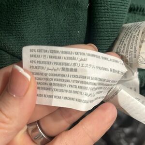 Experience comfort and style with this Hollister green sweatshirt hoodie, featuring a drawstring hood and ribbed cuffs for a snug fit. The soft cotton blend material offers a cozy feel, making it perfect for everyday wear. Its muted green color adds a versatile touch to your wardrobe.