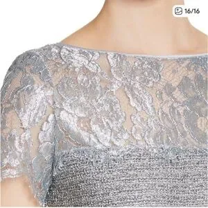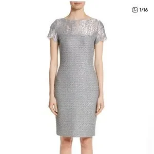 St John Metallic Sequined Knit Cocktail Sheath Midi Dress In Gunmetal Size 8