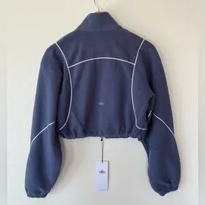NWT ALO Yoga Polar Fleece Game Time Full-Zip Jacket Size XS Cropped Blue/White