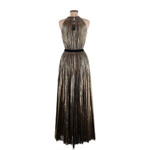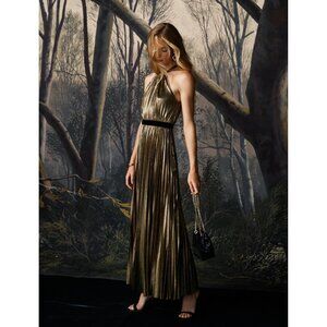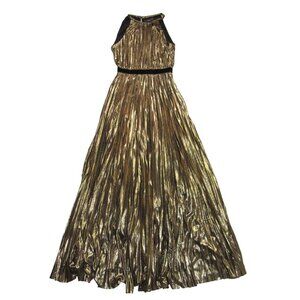 NWT BCBG MaxAzria Starling Gown in Gold Metallic Pleated Halter Maxi Dress S