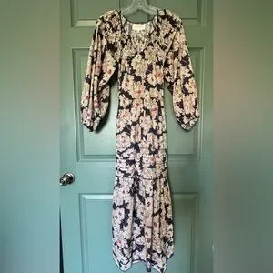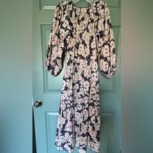 ❤️ THE GREAT FLOWY DAISY FLORAL COTTON MIDI DRESS BALLOON SLEEVES PEASANT BOHO